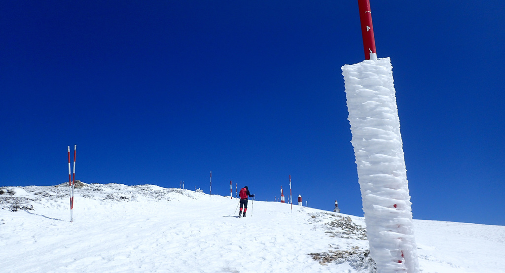 Alta probabilidad de que por la noche la temperatura descienda de 0 ºC (durante el invierno las temperaturas bajo cero son frecuentes en la cima).