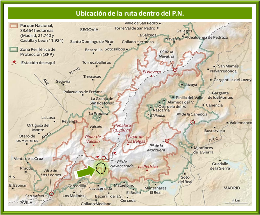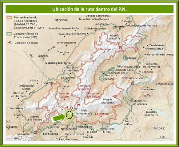 Tras llegar al municipio de Navacerrada por la crta. M-607, llegamos a una rotonda que da acceso al municipio y que tiene situada en el centro de la misma una gran piedra colgando. Se debe continuar recto sin entrar en el pueblo, y poco después aparece a mano derecha una crta. (calle crta. de la Barranca) donde se encuentra un letrero que indica hacia la Barranca. Cogemos este desvío y en unos 5 minutos llegaremos al punto de inicio de la ruta, lugar donde se encuentra el parking.