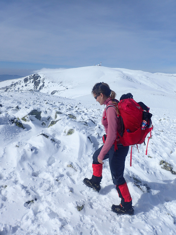 La vuelta al aparcamiento puede realizarse por varios tramos. En esta ocasión elegimos bordear el Peñotillo, y tras descender una pista, alcanzar de nuevo la ruta de ida, deshaciendo el camino ya antes realizado. En invierno la primera parte de la bajada puede resultar algo cansada, debido a los tramos de roca y nieve, que nos harán ir con crampones en una gran parte del descenso para evitar resbalones.
